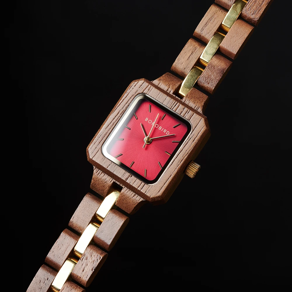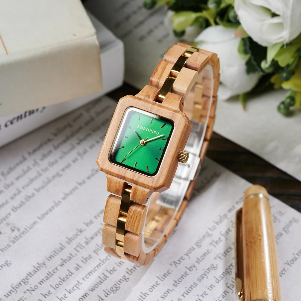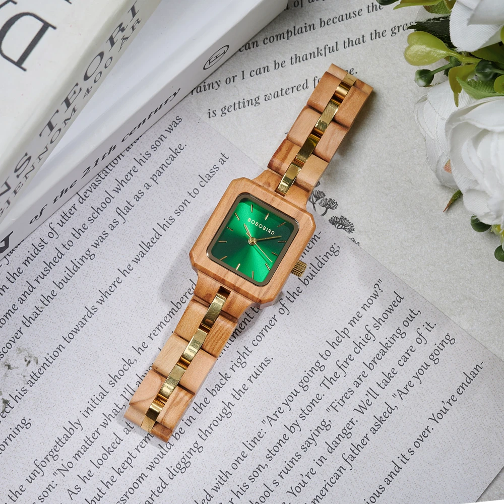 Fashion Women's Watch Wooden Links Square Face Wrist Watch for Ladies Special Gift