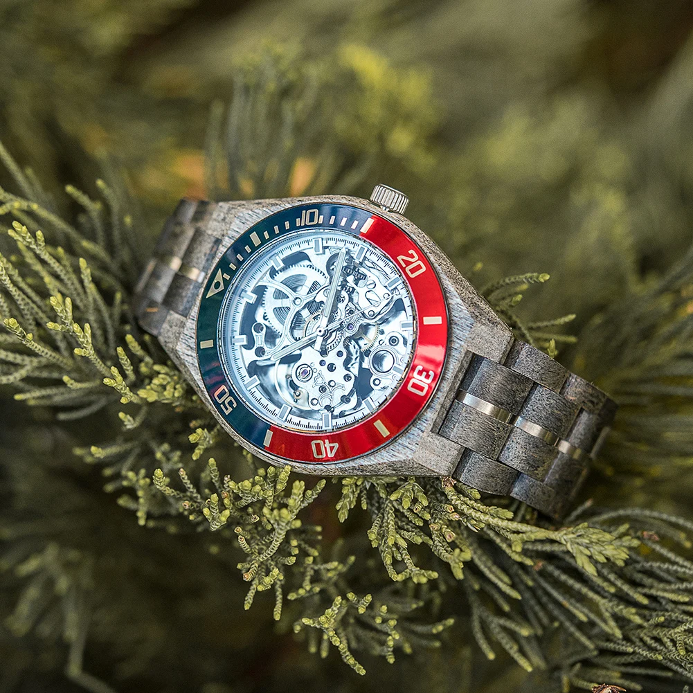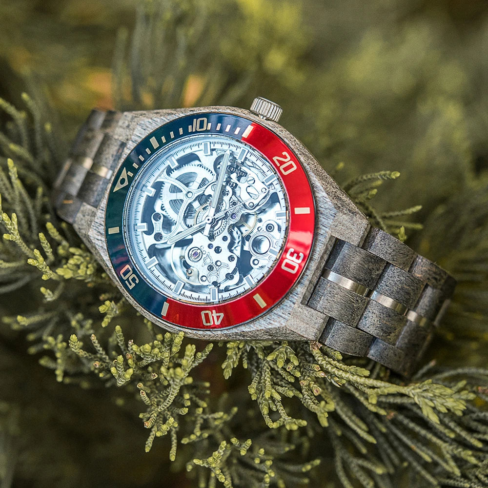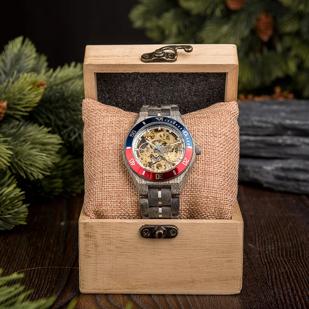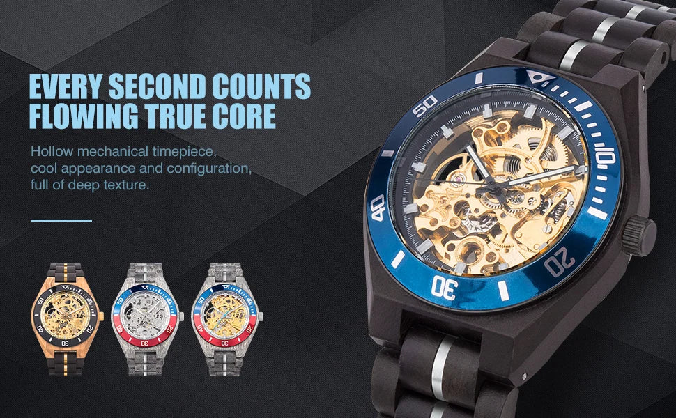 Men's Mechanical Wooden Automatic Watch - Hollow-Carved Mechanical Skeleton Wristwatch