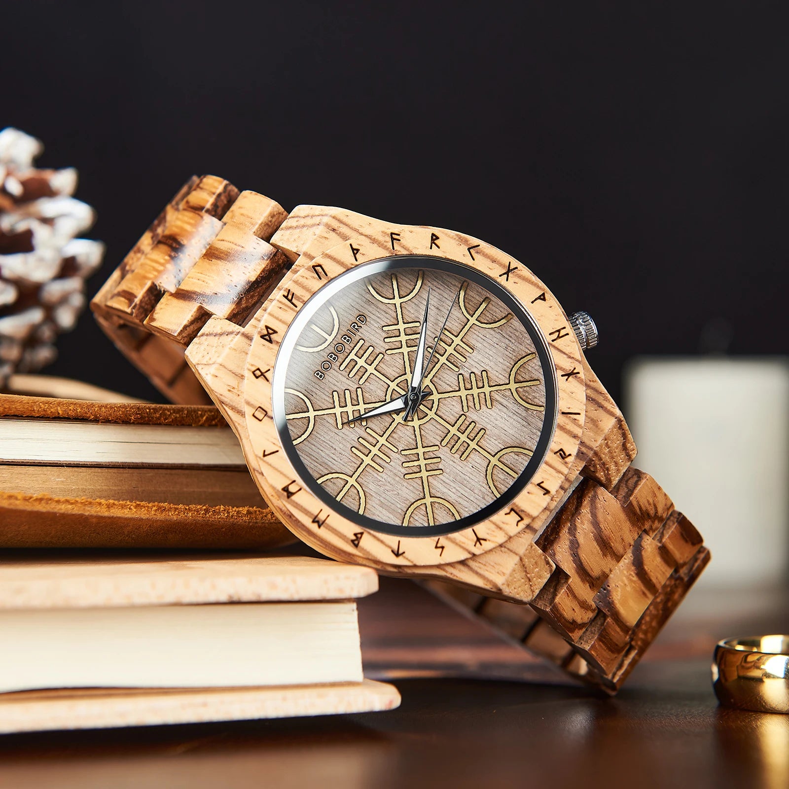 Men's Viking Style Wooden Wristwatch - Vintage Watch for Men