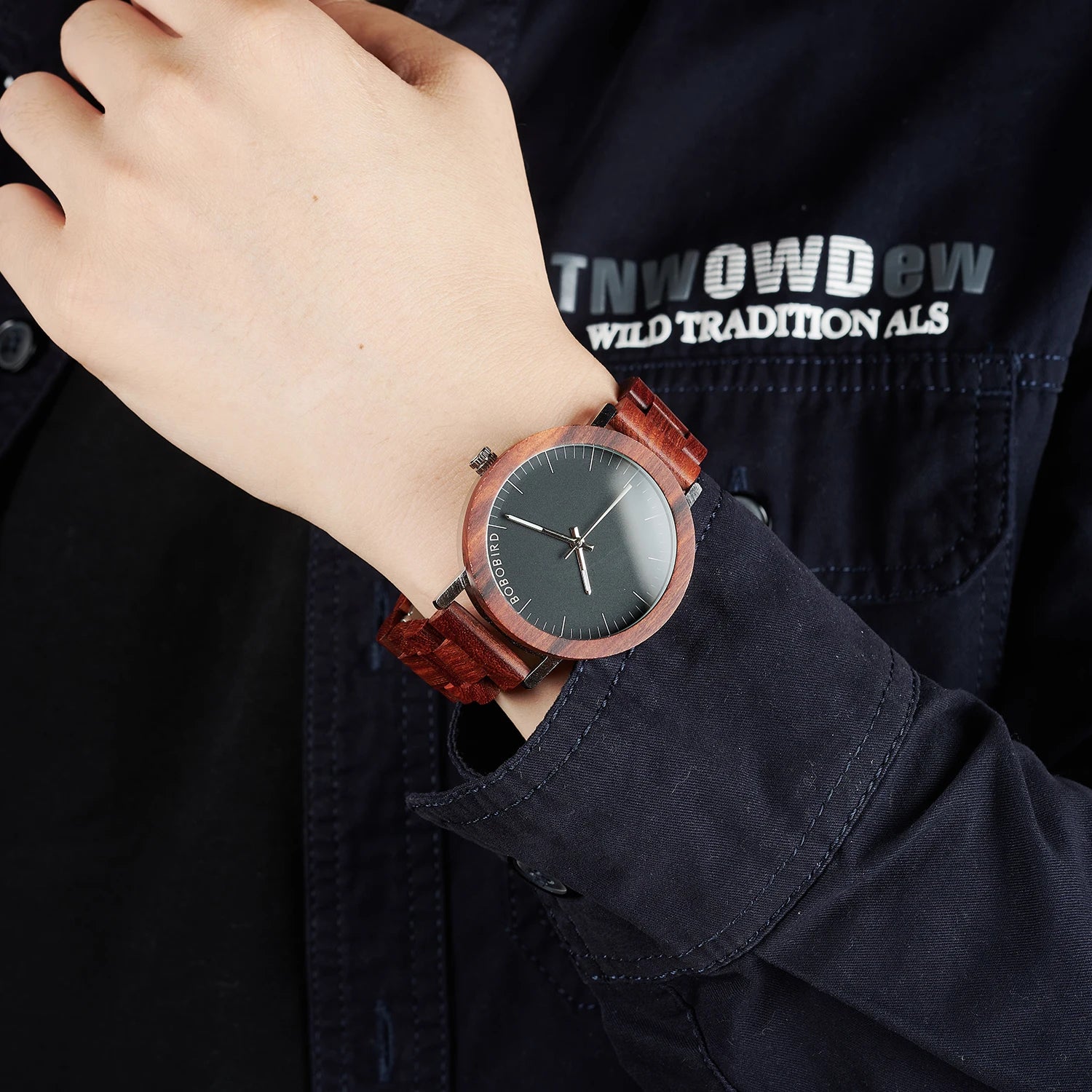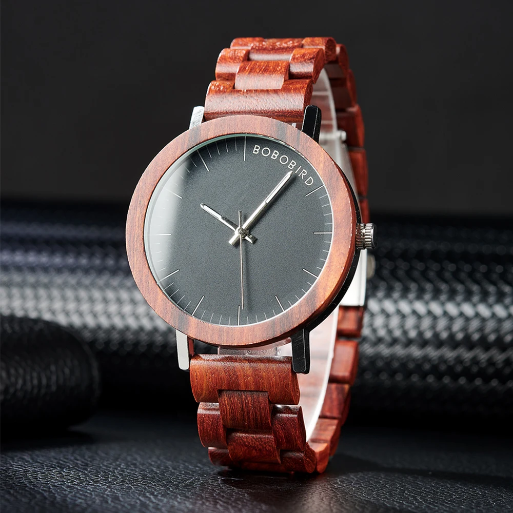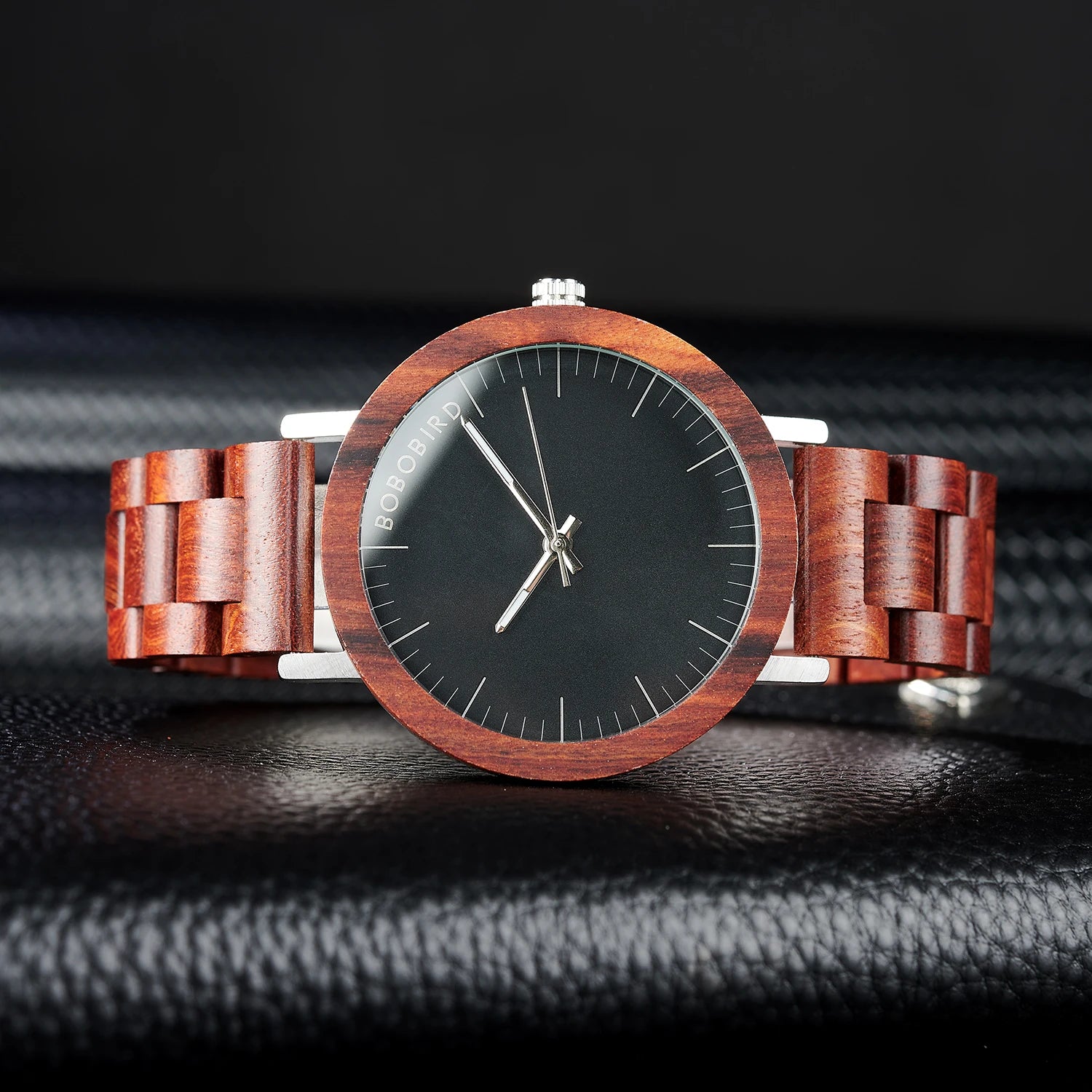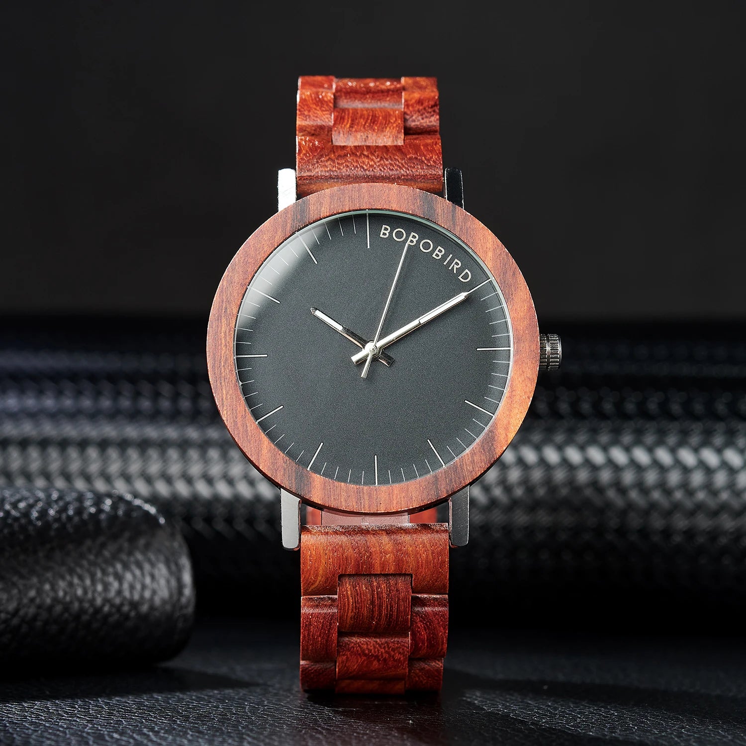 Men’s Red Sandalwood Watch - Quartz Movement With Analog Black Face