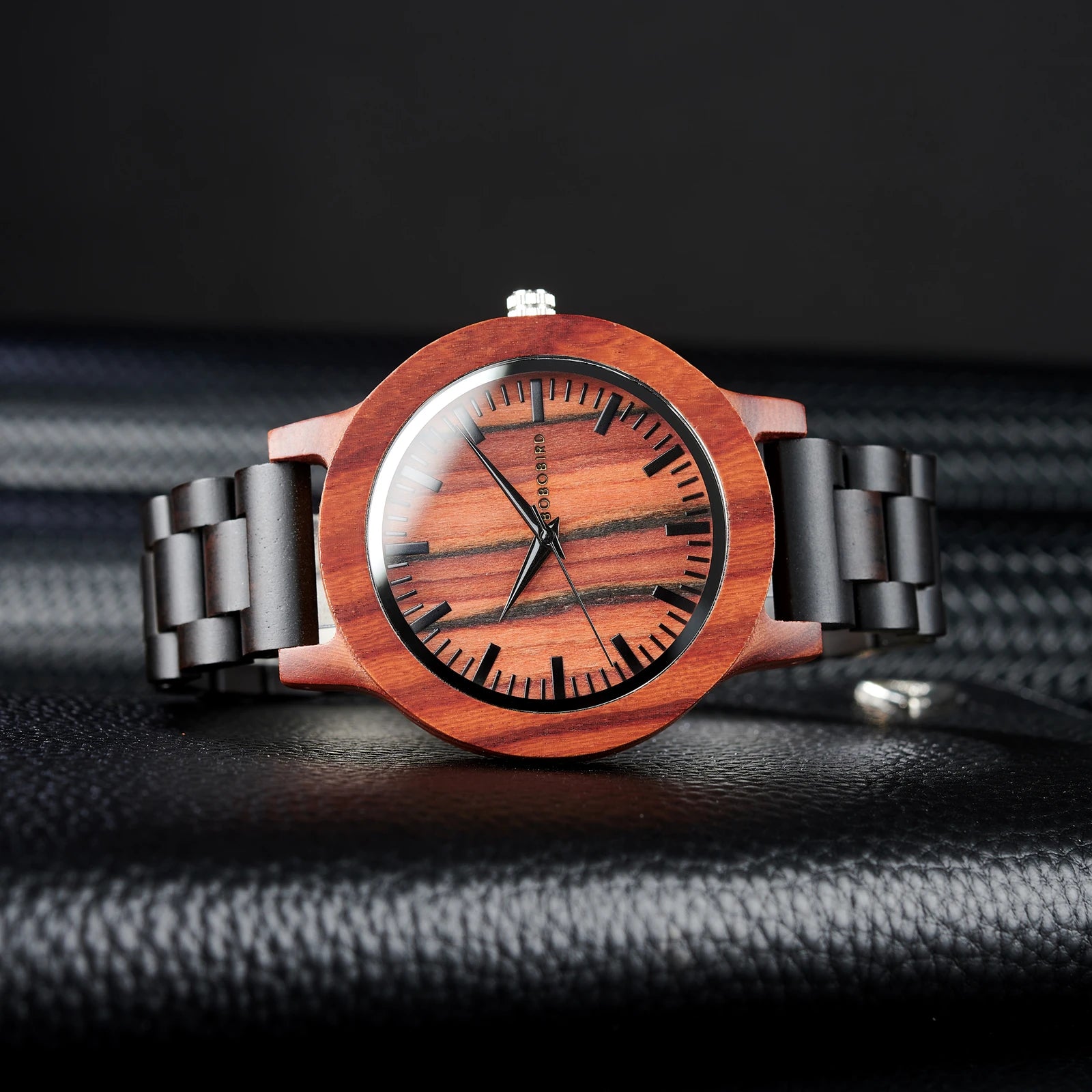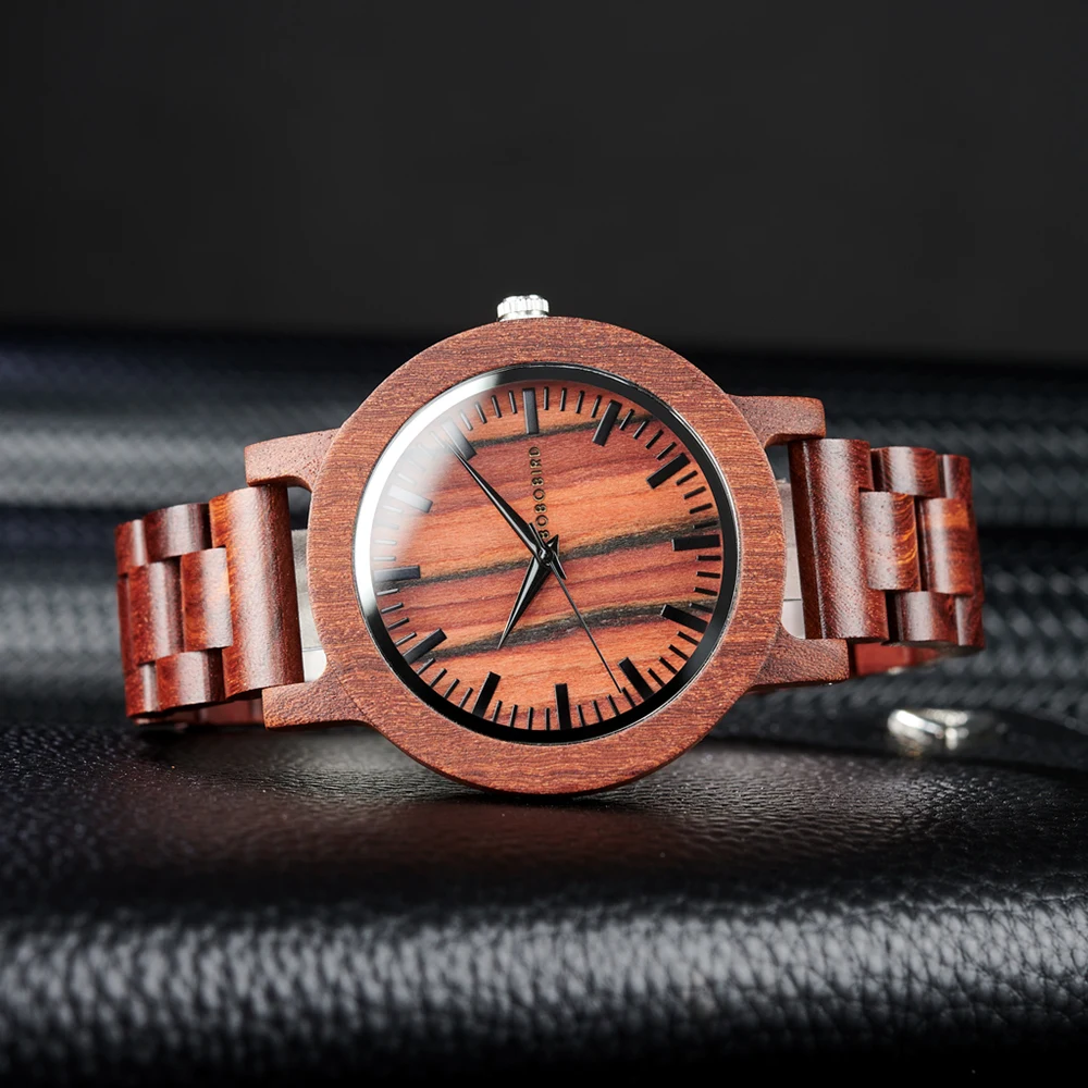 Men’s Classic Analog Sandalwood Watch - Quartz Movement With Wooden Box