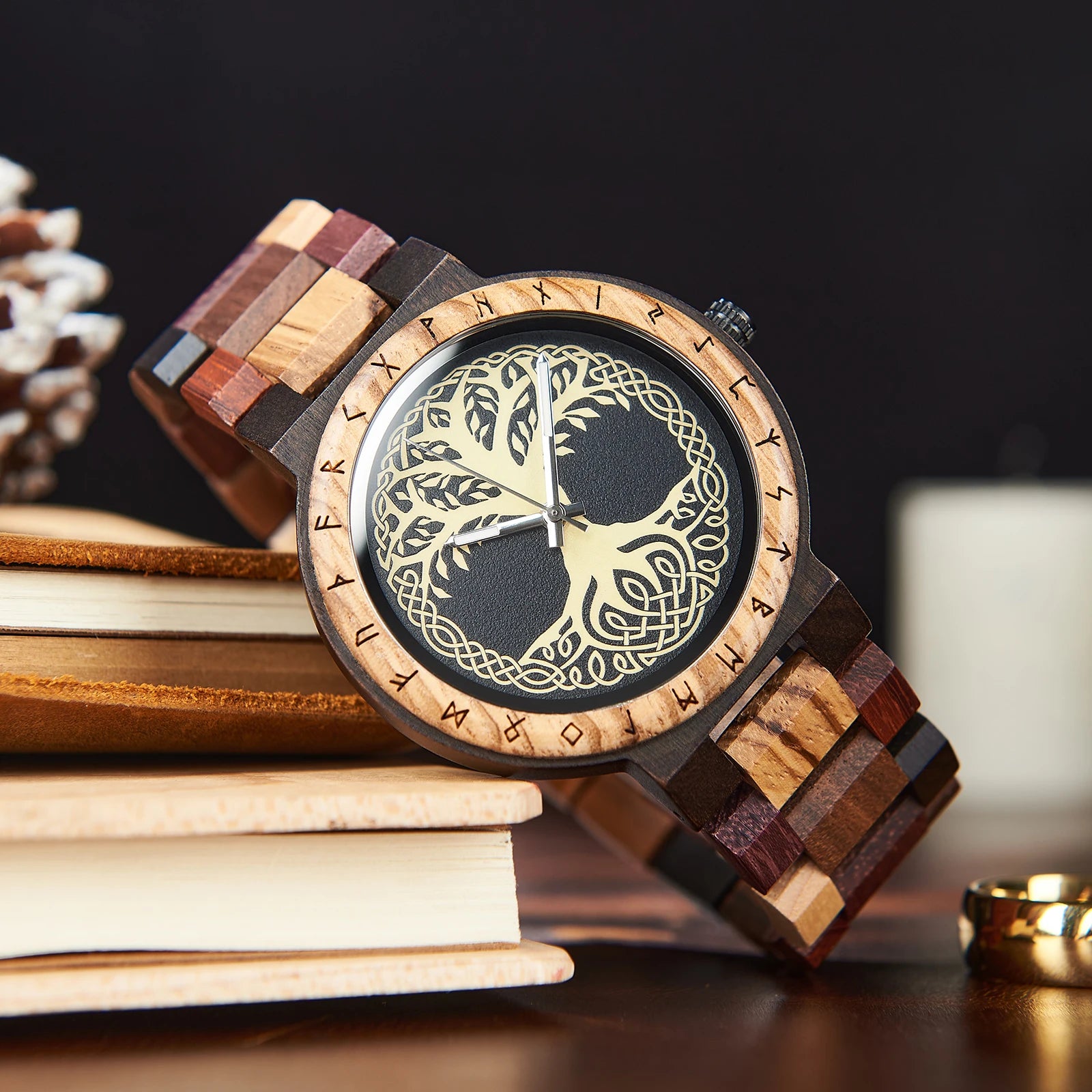 Men's Wooden Wristwatch - Viking Face Style - Gift Idea for Men