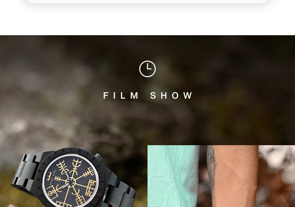 Viking Style Man's Wooden Watches - Vintage Quartz Movement Watch for Men