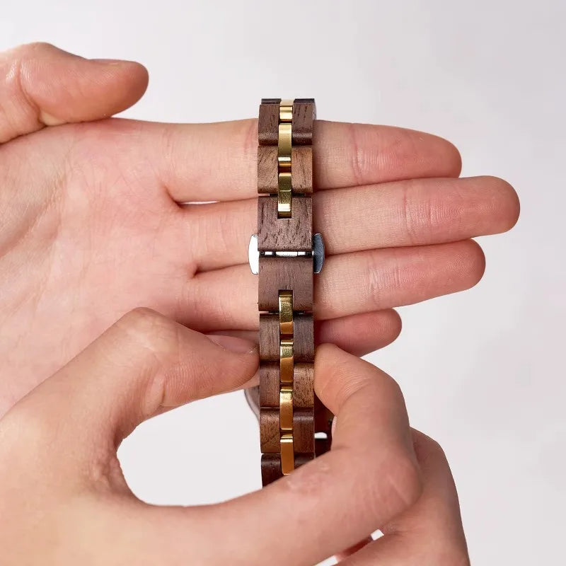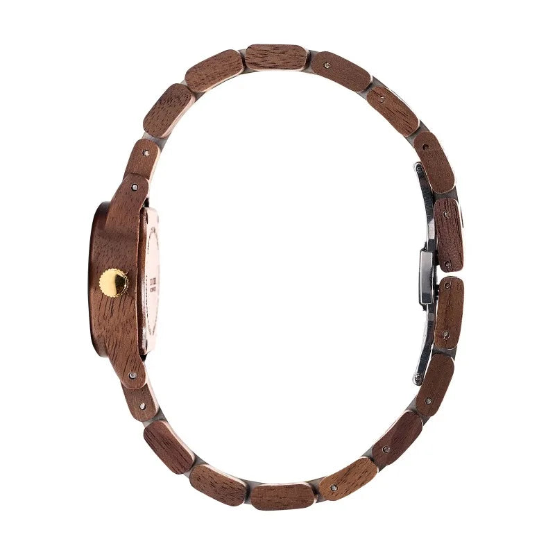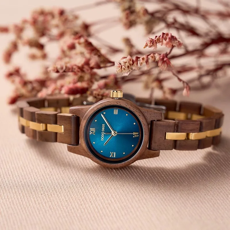 Women’s Wooden Fashion Watch - Blue Analog Face With Roman Numerals And Gold Tone