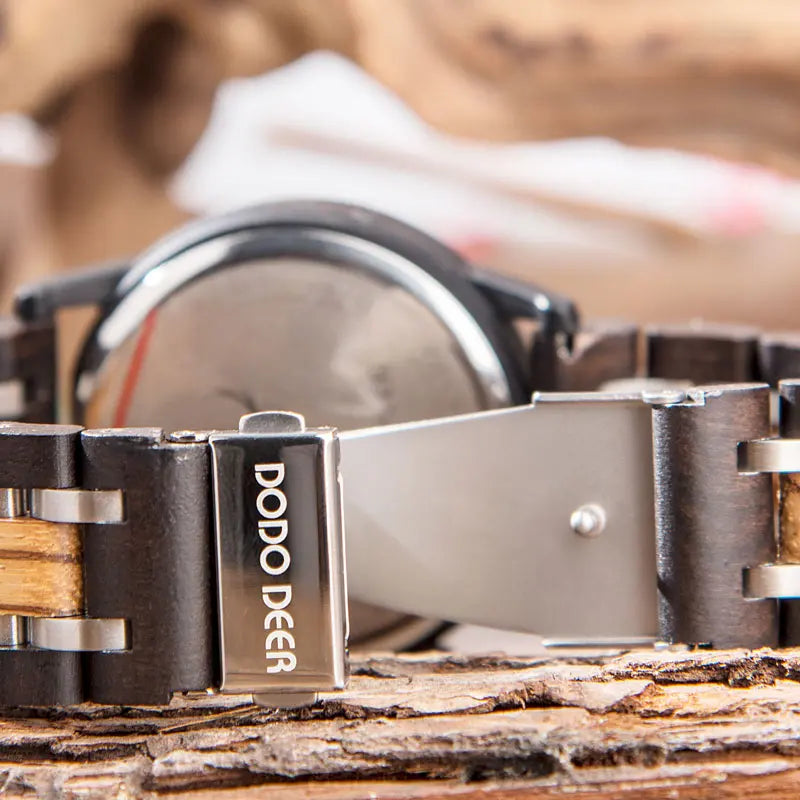Men’s Stainless Steel And Wood Wrist Watch - Chronographic Sports Face With Analog Date And Time Display