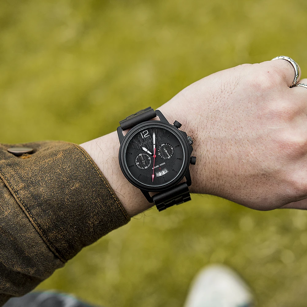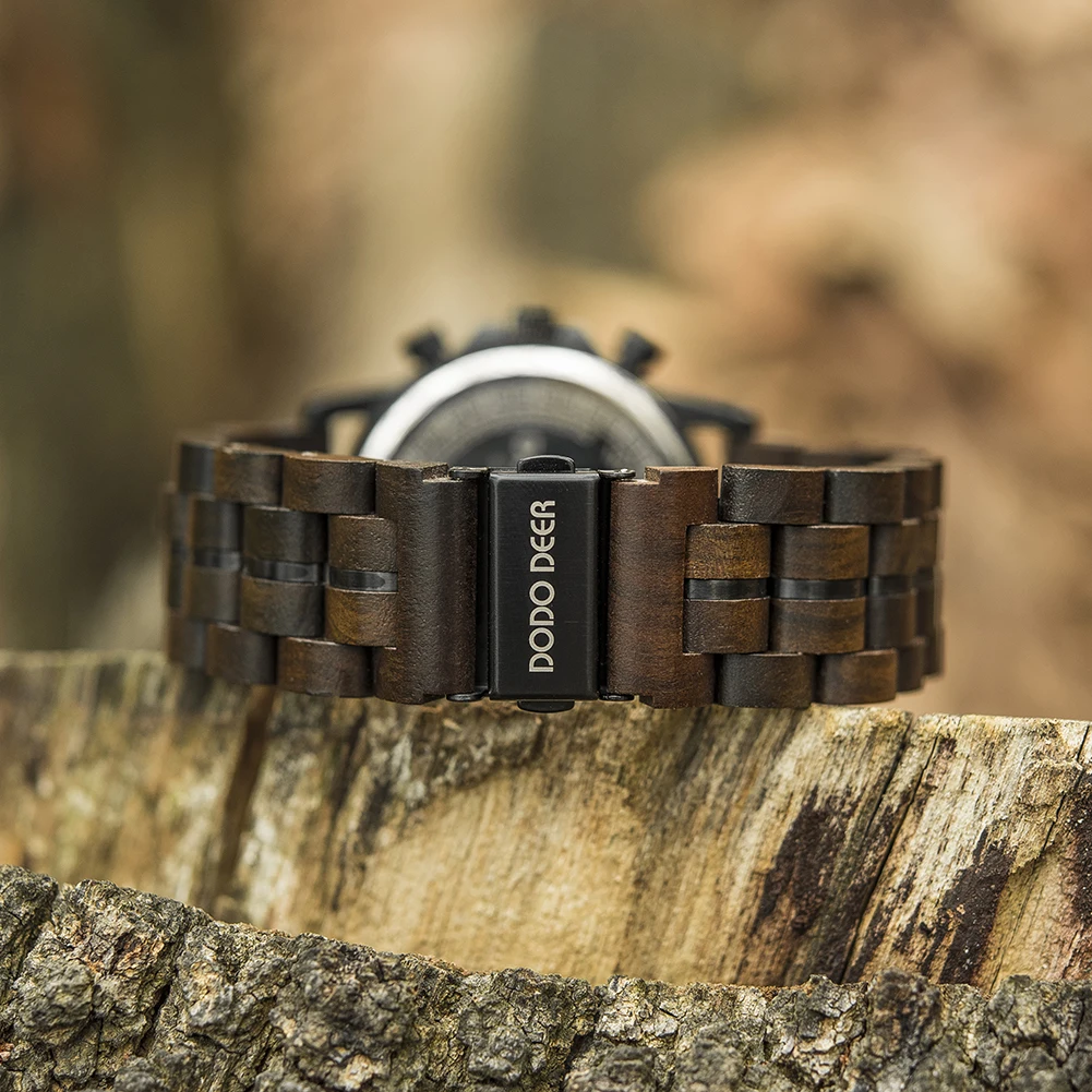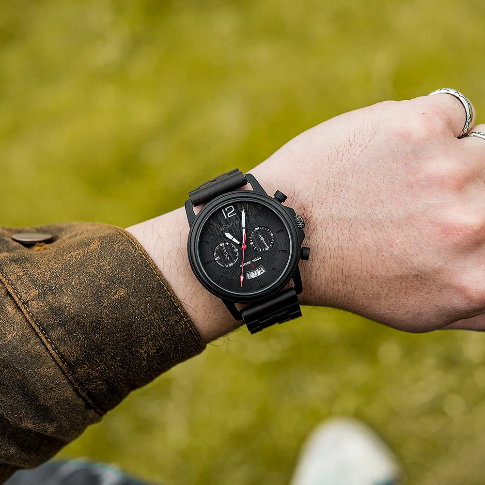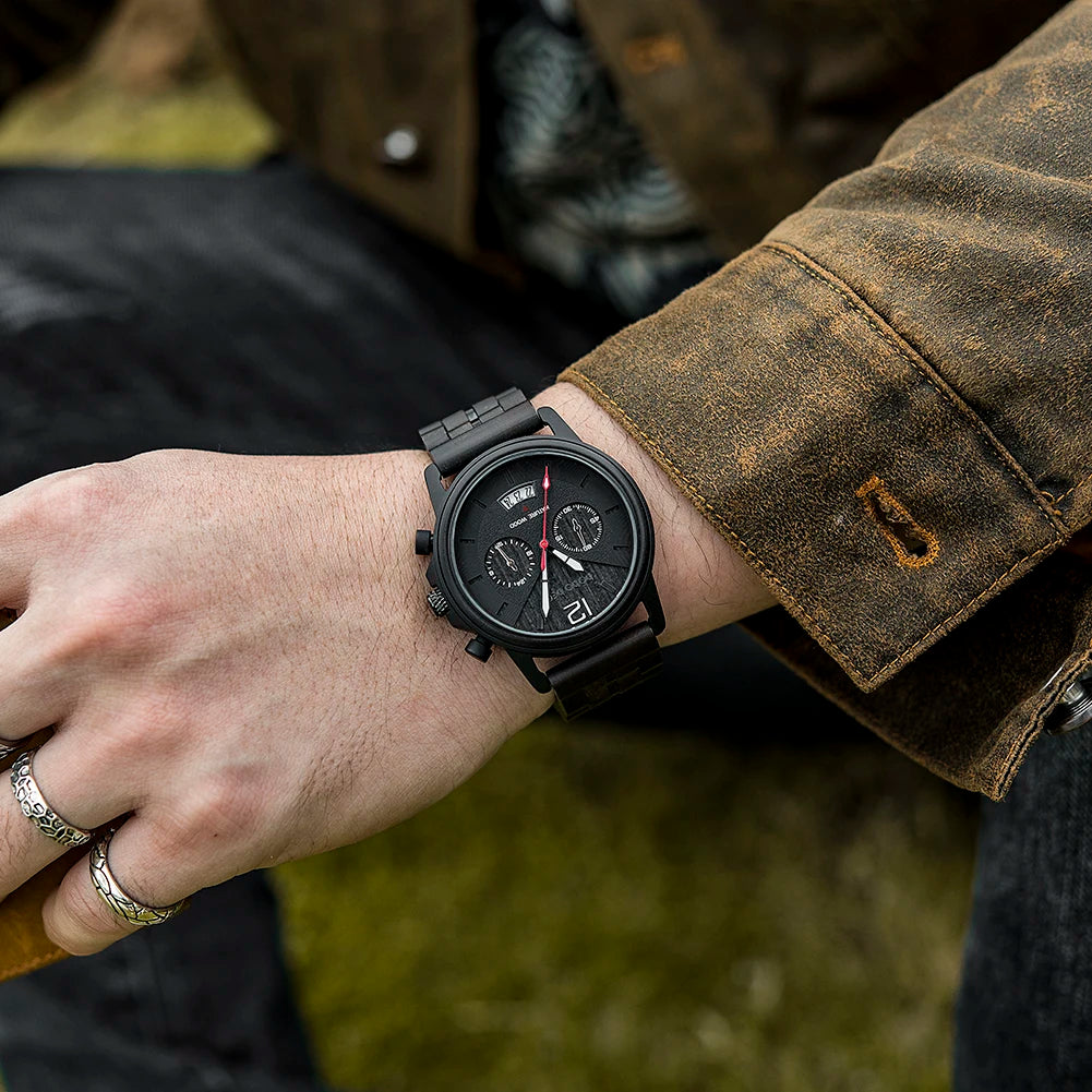 Men’s Classic Fashion Ebony Wooden Quartz Movement Wristwatch - Auto Date Calendar Display