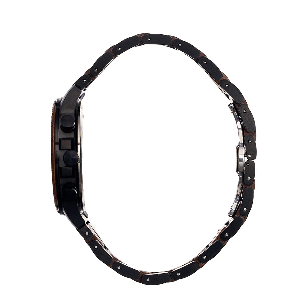 Luxury Wooden Watch For Men - Chronographic Round Face With Time And Date Display