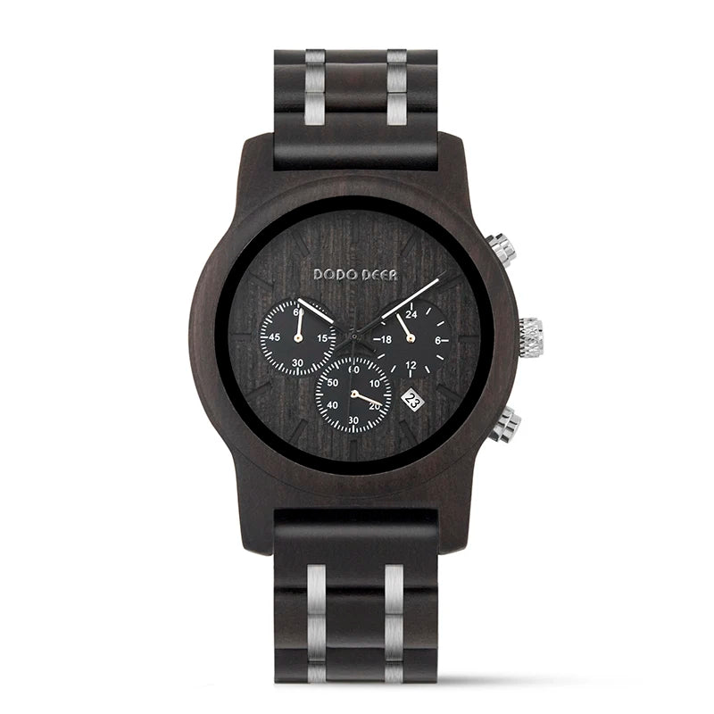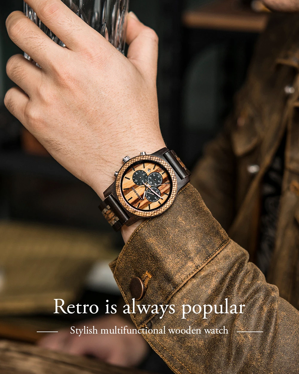 Mens Quartz Movement Wooden Wristwatch - Chronograph Luxury Stopwatch Auto Date Timepiece