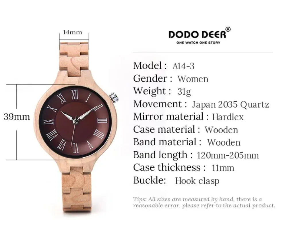 Women's Wooden Fashion Watch - Classic Retro Analog Display With Tound Face And Quartz Movement