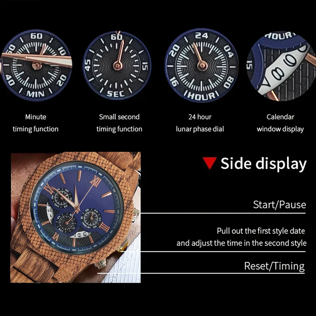 Wooden Wrist Watch for Men - Luxury Stylish Multifunction Chronographic Face